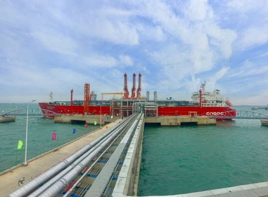 1月9日早上7时50分,“海洋石油301”轮缓缓进入防城港辖区,气电集团总经理邱健勇一行一早便来到广西LNG码头,要求各专业人员做好接船的各项工作。9时19分,随着最后一根缆绳系泊到位,载运约3万立方液化天然气的“海洋石油301”轮安全靠泊广西LNG码头。 1月10日,随着3万立方米液化天然气沿着卸料臂从LNG专用运输船“海洋石油301”源源不断输往2座白色储罐,中国海油在我国西南地区建设的首座LNG接收站开始试生产。 该站位于广西防城港市,历时7年建成,有2座3万立方米储罐、一座5万吨级液体化工码头及配套设施,年LNG周转量60万吨。依托该站,中国海油将立足广西,辐射云贵,满足我国西南地区清洁能源需求,促进当地能源结构优化与绿色发展。 作为我国LNG行业的领跑者,早在上世纪90年代,中国海油就着手布局LNG产业,2006年广东大鹏LNG接收站建成投产,首船LNG自澳大利亚运抵回国,开启了我国进口LNG的历史,促进了我国能源供应多元化,推动了煤炭、石油传统能源向清洁能源的升级换代。至2018年底,中国海油已在广东、福建、浙江、天津、海南等地建成9座LNG接收站,累计进口LNG上亿吨,为国家减排二氧化碳3.8亿吨,相当于植树8亿棵,为接收站所在地区的环保及经济社会发展作出了重要贡献。 近年,我国西南地区发展迅猛,对清洁能源的需求量不断增大。中国海油积极履行央企责任与担当,将LNG产业布局西南。考虑到防城港十分有利的区位优势,2012年在此开建广西LNG接收站。 广西LNG是中国海油第10座LNG接收站,是中国海油迄今建成的国产化程度最高的接收站。它的建成,不仅为广西地区供应优质高效清洁能源,还将惠及云贵地区,使这些地区能像沿海地区一样,用上清洁能源。 广西LNG的建成投产,还将进一步增强我国冬季天然气保供能力,对优化我国能源消费结构、助力打赢蓝天保卫战也具有重要意义。中国海油还将充分发掘利用新接收站接近铁路线优势,创新国内LNG罐箱铁路应急保供运输的新模式,进一步降低液态LNG运输成本,节省远距离运输时效,及时为西南边远地区乃至全国各地提供及时充足的清洁能源,充分发挥好央企经济建设主力军作用。