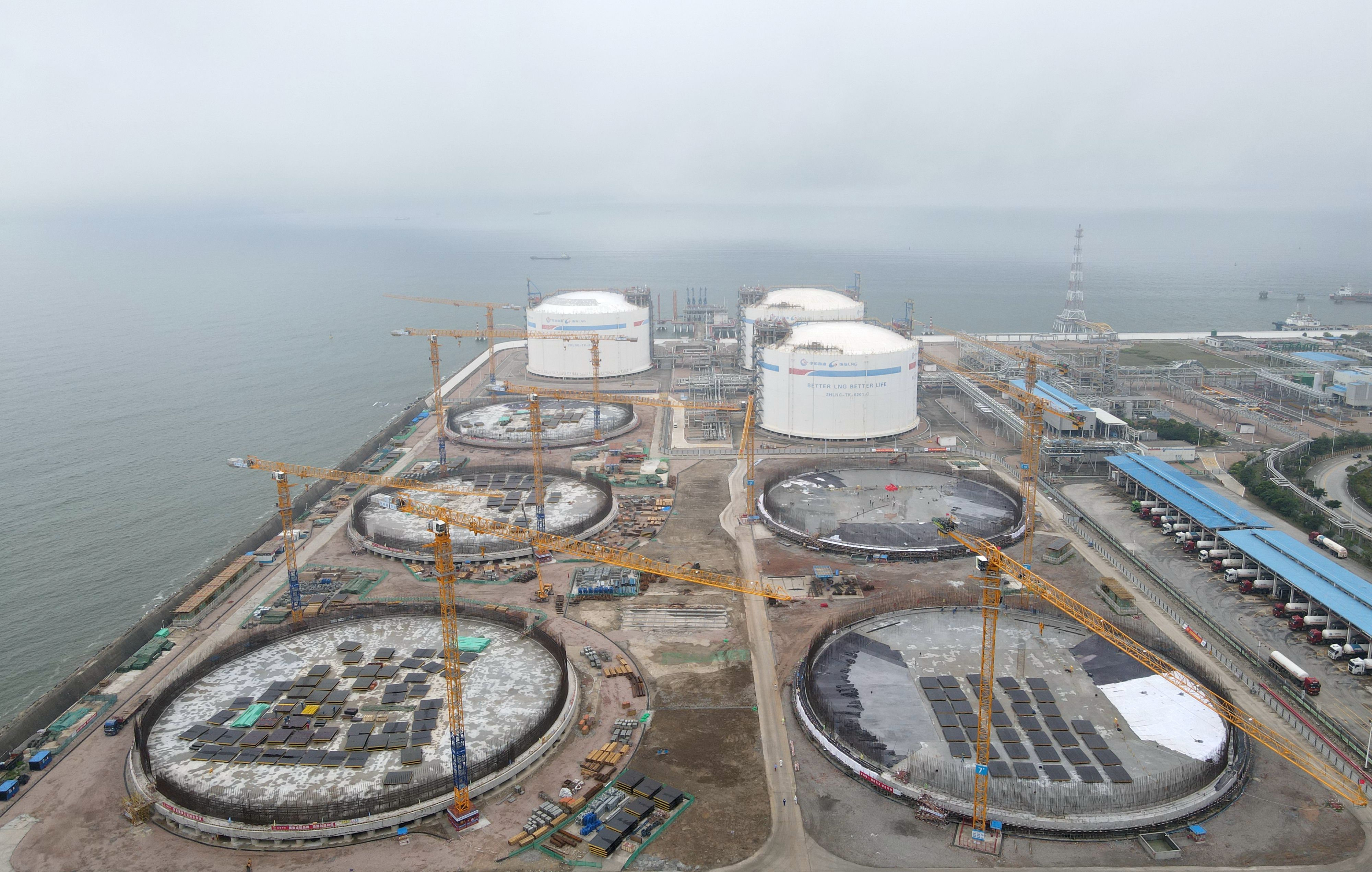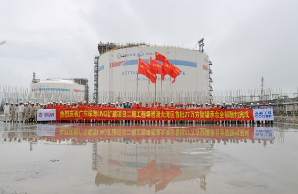 5月27日,历经120天的紧张施工作业,珠海LNG二期项目5座27万立方米液化天然气(LNG)储罐完成全部承台混凝土浇筑,标志着由我国自主设计和建造的世界最大LNG储罐正式由基础施工迈进主体施工阶段。 珠海LNG二期项目是国家天然气产供储销和石油天然气基础设施重点工程项目,建设的5座27万方LNG储罐是目前国内在建的最大容积LNG储罐。此次浇筑的单个基础承台直径100.6米,中心区域厚度1.4米,边缘区域厚度1.6米,采用跳仓法分层振捣推移式连续浇筑,基础承台混凝土浇筑量单罐11810立方,合计59050立方,相当于25个标准奥运竞赛泳池容量。 该扩建项目建成后,珠海LNG接收站LNG年处理能力可达700万吨,折合气态天然气约100亿立方米,将成为我国华南地区规模最大的液化天然气储运基地,为粤港澳大湾区提供持续稳定的清洁能源。 按照1户居民每月用气30立方米计算,100亿方天然气大约可供2777万户居民使用1年,保供作用非常突出。以1立方米天然气发电5千瓦时计算,100亿立方米天然气可发电约500亿千瓦时,可实现减排二氧化碳3352万吨,二氧化硫27万吨,相当于植树7000万棵,绿色低碳效应显著,对推动粤港澳大湾区经济建设具有重要意义。